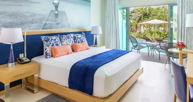 Swim-up access from the pool Private patio Ground floor location Choice of a king bed or double beds Book King Bed Book 2 Double Beds
